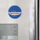 La bandera de Cabo Verde ha sido cuidadosamente ajustada a la forma circular de este imán. Una forma decorativa de promover la cultura caboverdiana.