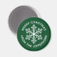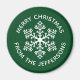 Un copo de nieve blanco sobre un fondo verde con "Feliz Navidad" de la familia que lo rodea.