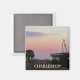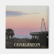Este imán presenta una foto de la puesta de sol sobre el río Cooper en Charleston, SC con el puente Ravenel y un árbol Palmetto en silueta.