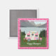 Magnate de nevera con temática de camper o RV. Creado con una imagen de una escena de remolque de viajes estilo glamper rosa de estilo retro y flamingo con tu propio texto editable. Vea otros elementos de esta misma colección en Camp_and_Cottage en Zazzle.