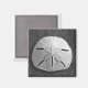 En la playa de arena hay un dólar con una suave iluminación lateral desde la puesta de sol. La imagen es una fotografía en blanco y negro tomada en Playa Grande, Costa Rica en la costa del Océano Pacífico. Personalizar este imán de playa con su propio texto o imágenes.