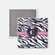 Un imán cuadrado de dos pulgadas que tiene un patrón de cebra en blanco/negro con un diseño de monograma floral. Puede agregar su nombre e inicial a este producto utilizando la plantilla personalizado.