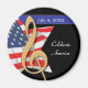 ¡Celebremos América! Este es un imán elegante, único y patriótico. Las estrellas llenas de bandera y el arrecife dorado del trébol hacen de un imán impresionante para un evento musical patriótico.