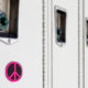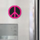 Símbolo de signo de paz rosa rosa contra fondo negro.