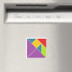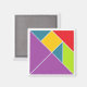 El antiguo rompecabezas del tangrama chino consta de 7 formas geométricas: 2 triángulos grandes, 1 triángulo medio, 2 triángulos pequeños, 1 cuadrado y 1 paralelogramo. Se muestra que el rompecabezas se ha completado para formar un cuadrado colorido. Espero que disfrutes este imán de tangrama.