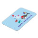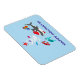 Magnet con diseño temático de Navidades oceánicos. El diseño consiste en un tiburón lindo que lleva un sombrero de Papá Noel y regalos de Navidad, una linda tortuga marina verde y un cangrejo rojo lindo. El diseño se completa con un pequeño coral blanco dispuesto como un árbol de Navidad y decorado con conchas azules, rosas y violetas y una estrella de mar roja. El texto dice "¡Felices fiestas!". El diseño es personalizable y se puede personalizar el texto.