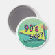 Baby Magnet de los 90 con una divertida tipografía de "90's Baby'. El diseño incluye elementos de azul, naranjas y rosados, bordes amarillos, rasgados, patrones geométricos y formas inspirados en los años 90.