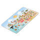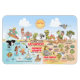 Una escena luminosa y colorida ofrece una vista espectacular del sur de California - personajes extravagantes de la playa y el desierto de SoCal mostrando Los Ángeles, San Diego, Condado de Naranja, Santa Bárbara, Riverside, Palm Springs, Anza Borrego y los parques de árboles Joshua Tree, así como las ciudades fronterizas de Tijuana, Tecate y Mexicali. Esta encantadora escena lo tiene todo - un surfista cuelga diez mientras una ballena asesina salta del agua, animales del zoo saludan a los turistas, una pareja de playa muscular flex para impresionar mientras un T-Rex ruge un desafío y un tanque se mueve en posición y mucho más...