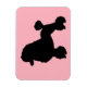 ¡Rompe tus calcetines de bobby y zapatos de montura y empieza a bailar! Este imán flexible inspirado en la falda rosada del caniche de los años 50 se parece a una clásica falda de caniche de los años 50. El diseño tiene una silueta negra de un caniche sobre un fondo rosado. ¡Está empezando a parecerse mucho a los años 50!