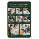 Revista fotográfica de feriado verde. Eleva tus sentidos sentidos con nuestra moda "Un año para recordar" tarjeta de imán fotográfico personalizada de vacaciones. Este elegante hotel de diseño, con una fuente de máquina de escribir vintage y un espacio para 8 fotos familiares, es la combinación perfecta de nostalgia y estilo. Texto blanco sobre fondo verde. ¡Personaliza y convierte tus recuerdos en atemporales!