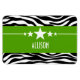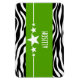 Moderno y moderno Sassy Star Zebra Premium Magnet con fondo de moda de cebra en blanco y negro y un audaz borde verde de cuadros adornado con un divertido motivo estrella. Este diseño ondulado puede ser personalizado con el texto personalizado de su elección. Haga clic en "Personalizar" para encontrar más opciones de personalización.