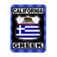 Magnet griego-estadounidense de California. Diseño griego californiano, al estilo de un genial cartel de ruta estadounidense. El texto California Greek está en la parte superior e inferior, con la bandera del Estado de California y la bandera de Grecia en el cartel de la ruta. ¡Excelente para californianos de ascendencia griega, y para expatriados en la República de California!