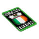 Magnet irlandés americano de California. Diseño irlandés californiano, al estilo de un genial cartel de ruta estadounidense. El texto California Irish está en la parte superior e inferior, con la bandera del Estado de California y la bandera de la República de Irlanda dentro del cartel de ruta. ¡Excelente para californianos de ascendencia irlandesa, y para expatriados en la República de California!