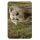 Este imán impresionante presenta una hermosa fotografía de un lindo cochinillo rosado que emerge de una hierba alta.