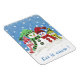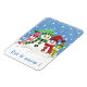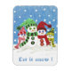 Un lindo imán premium flexible con el colorido ilustracion de una familia de hombres de nieve y las palabras "¡Déjenlo nevar!" © ArianeC Ilustraciones