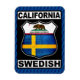 Magnet sueco americano de California. Diseño sueco de California, al estilo de un genial cartel de ruta estadounidense. El texto California Swedish (Sueco de California) está en la parte superior e inferior, con la bandera del Estado de California y la bandera de Suecia dentro del símbolo de la ruta. ¡Excelente para californianos de ascendencia sueca, y para expatriados en la República de California!