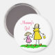 Madre e hija se dan la mano. El vestido de la madre decía "mami" y el vestido de la niña decía "yo". La familia tiene pelo rubio y piel clara. La imagen viene en múltiples versiones étnicas. Tampoco hay una versión de dibujo de color. ¡Cambia las palabras de "Chica de mamá" y personaliza el imán con nombres familiares o un mensaje personalizado para una madre especial o imanes mamarios! ¡Puedes hacer imanes de arte para refrigeradores personalizados para un regalo especial del Día de la Madre, nueva mami, Reunión familiar u otros regalos de arte familiar personalizados!