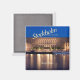Los imanes del refrigerador representan una escena nocturna en Estocolmo, Suecia.