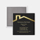 Los imanes de los negocios inmobiliarios no tienen que estar llenos de detalles de negocios. Están diseñados para ser mantenidos en algún lugar magnéticamente práctico para sus clientes actuales o posibles clientes. Creado con un símbolo de techo de color dorado y plantillas de texto para el personalizar en línea. Diseñado para un Realtor residencial o Broker.