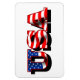 Un imán flexible de personalizable que muestra "USA" con la imagen de la bandera estadounidense dentro del texto. Haga clic en "Personalizar" para cambiar el tamaño, borrar o mover la imagen como prefiera. Mantenga pulsado el botón "Ctrl" para ajustar los objetos en incrementos más pequeños y el botón "Shift" para incrementos mayores. Cambiar el color de fondo. Haga clic en "Editar", "Fondo" y elija un color. Agrega tus propias imágenes o texto, o tu nombre para que este elemento sea tuyo de forma permanente.