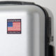 Una auténtica imagen de calidad superior de la bandera de los EE.UU. establecida entre el nombre del estado y el apodo sobre un fondo de color de la bandera.