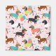 Perros adorables fiestas de cumpleaños dachshund con abrigos negros, tostados y de manzana vestidos con adorables trajes de cumpleaños con globos, tortas y patrones de confeti.
