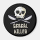 Calavera cruda con cucharas cruzadas y texto de leche que dice "Asesino de cereales"