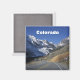 Este imán de Colorado muestra la carretera U.S. Highway 550 entre Durango y Silverton, con nieve.