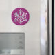 Cristales resplandecientes y cuentas brillantes decoran esta foto ilustrada con copos de nieve. Este imán es un regalo maravilloso para los huéspedes. Está disponible en varios tamaños y varios son perfectos para decorar cualquier superficie magnética durante la temporada de invierno.