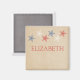 Estrellas patrióticas 4 de julio de imán con un fondo de papel de textura falsa y una cascada de estrellas rojas, blancas y azules en caída. ¡Este imán de refrigerador es una manera elegante de mostrar su lado patriótico este Día de la Independencia! Fácil de personalizar, simplemente añada su nombre o el texto de su elección. Este diseño también es apropiado para el Día de la Memoria.
