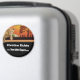 Escena de Safari MAGNET (o etiqueta de nombre) con cachorro de león, puesta de sol y tribu de África bajo el collage de árboles de Acacia (foto de una cachorro de león tomada por Christine Eichin mientras estaba en un safari africano en el sector de Ishasha en el Parque Nacional Reina Isabel en Uganda) - Arriba y más allá de África, Tu experto Safari, 1-877-GO-ON-SAFARI, www.YourSafariExpert.com