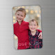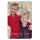 Añade algo de amor y alegría a los regalos de tus seres queridos con estos imanes de fotos simples, elegantes y personalizados. Personalizar con su propia foto familiar de sus hijos y añada el año para un regalo fotográfico especial y completamente único y personalizado. Esto es un gran regalo para los abuelos, la familia extendida, los amigos y los seres queridos. Este diseño funciona mejor con una foto vertical retrato con un fondo más oscuro para que el texto destaque. El texto dice "Amor y Alegría" en negrita, en mayúsculas.