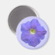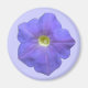 Este diseño presenta una foto de un petunia azul con tonos morados y un centro blanco sobre un imán.