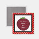 Red Apple Magnet, recortado en negro con puntos de polka blanco. Personalice cambiando el texto y agregando el nombre del profesor.