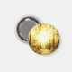 Mi foto realzada de la ráfaga de sol radiante sobre un camino dorado a través del bosque en un pequeño imán redondo
