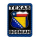 Magnet de Rótulo bosnio-americano de Texas. Diseño clásico de señas de ruta de EE.UU., con el texto TEXAS BOSNIAN, y las banderas del estado de Texas y Bosnia Herzegovina.