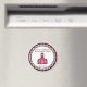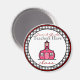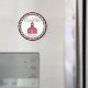 Un imán para profesores con el logo de La escuela rosa dentro de un marco de gingham en forma de círculo con guarnecido rojo. El texto en negro y rojo dice "Los profesores de segundo grado tienen clase".