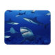 Magnet mostrado con una foto impresa de tiburones en las profundidades del mar. Personalizar este artículo o compra tal cual. Imagen de stock