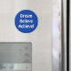 Imán azul con palabras Dream Believe Achieve! con letras blancas.