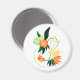 Magnet au motif floral et végétal tropical orange, jaune et vert sur fond blanc