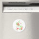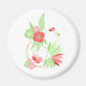 Magnet au motif floral et végétal tropical rose et vert pâle sur fond blanc