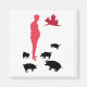 Comida feliz, tema vegetariano - un hombre gordo y un cerdo de ángel rosado , tema del arte para hacerte pensar en no comer animales.