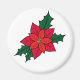 Imán Magnet redonda con Poinsettia Navidad Rojo