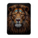 Imán. Añade un toque de arte regal a tu espacio con esta impresionante obra de arte de la cabeza de león al estilo mosaico. El diseño intrincado presenta una majestuosa cara de león compuesta por formas geométricas coloridas, creando un patrón vibrante y cautivador. Dominantes tonos marrones, naranjas y azules se mezclan sin problemas para resaltar la potente presencia del león y sus expresivos ojos dorados. Perfecto para los amantes del arte y de la vida silvestre, esta pieza única seguramente hará una declaración audaz en cualquier escenario. Ideal para impresiones, posters y una gran variedad de objetos decorativos.