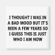 Por el amante del sarcasmo en todos nosotros. Echa un vistazo a este ingenioso "Pensé que estaba en mal estado de ánimo pero han pasado algunos años, así que supongo que esto es lo que soy ahora" diseño sobre prendas de vestir y regalos.