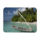 DERECHOS DE AUTOR Cindy Miller Hopkins / DanitaDelimont.com | AS24 CMI0011.jpg | Maldivas, Atolón de Malé Norte, Isla de Kuda Bandos. Barco tradicional maldivo frente a la playa de arena blanca bordeada de palmeras.