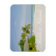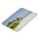 Fotografía de una playa relajante en las Maldivas con un bungalow, palmeras, arena cálida y olas del océano.