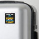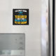 Imán de temas de hockey para la madre del hockey con calcetines de hockey y palos con texto de blanco, amarillo y azul que dice ¡Lo único más duro que un jugador de hockey es su mamá!