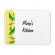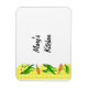 Un imán de cocina personalizado con un borde de frijoles verdes y cristales fritos sobre un patrón retro de rayado de gingham amarillo con un toque de naranja dorado y un hilo minúsculo de verde salado. Haga clic en Personalizar para agregar su nombre o mensaje.
