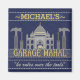 Este diseño divertido y personalizado es perfecto para decorar tu cueva masculina. Dice, "[Tu nombre] Garage Mahal" y muestra un contorno del Taj Mahal con martillos, choferes y un auto pequeño que parece que está estacionado en el medio. Añade fácilmente tu nombre a la parte superior. Los colores son azul, gris y amarillo dorado.
